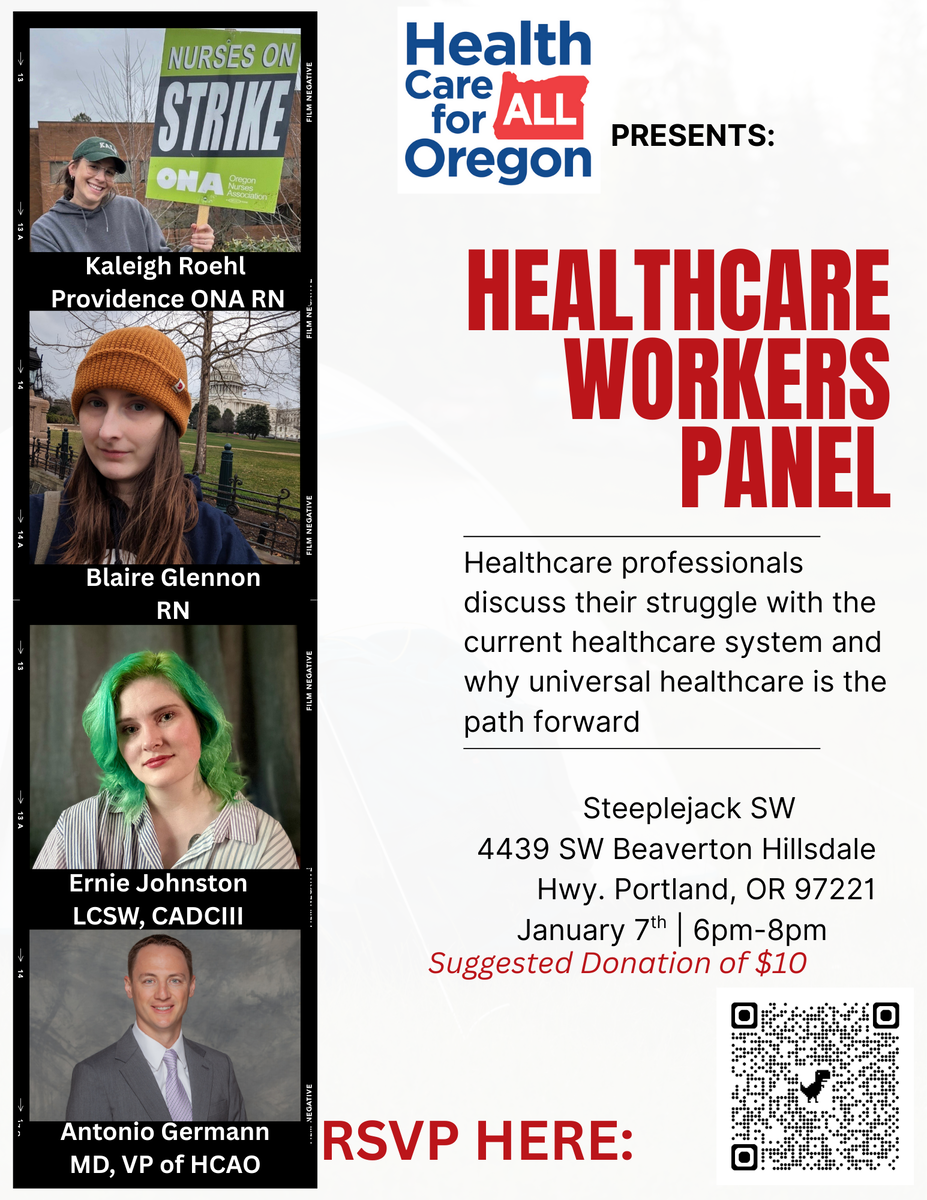 Hi everyone! We are doing our first speakers night in Portland on January 7th at Steeplejack SW! We are super excited for this. It's an educational opportunity for the public to hear what healthcare professionals are experiencing with our broken system as well as a chance for health professionals to gather together and build community. We also hope to do a little fundraising off of the event.